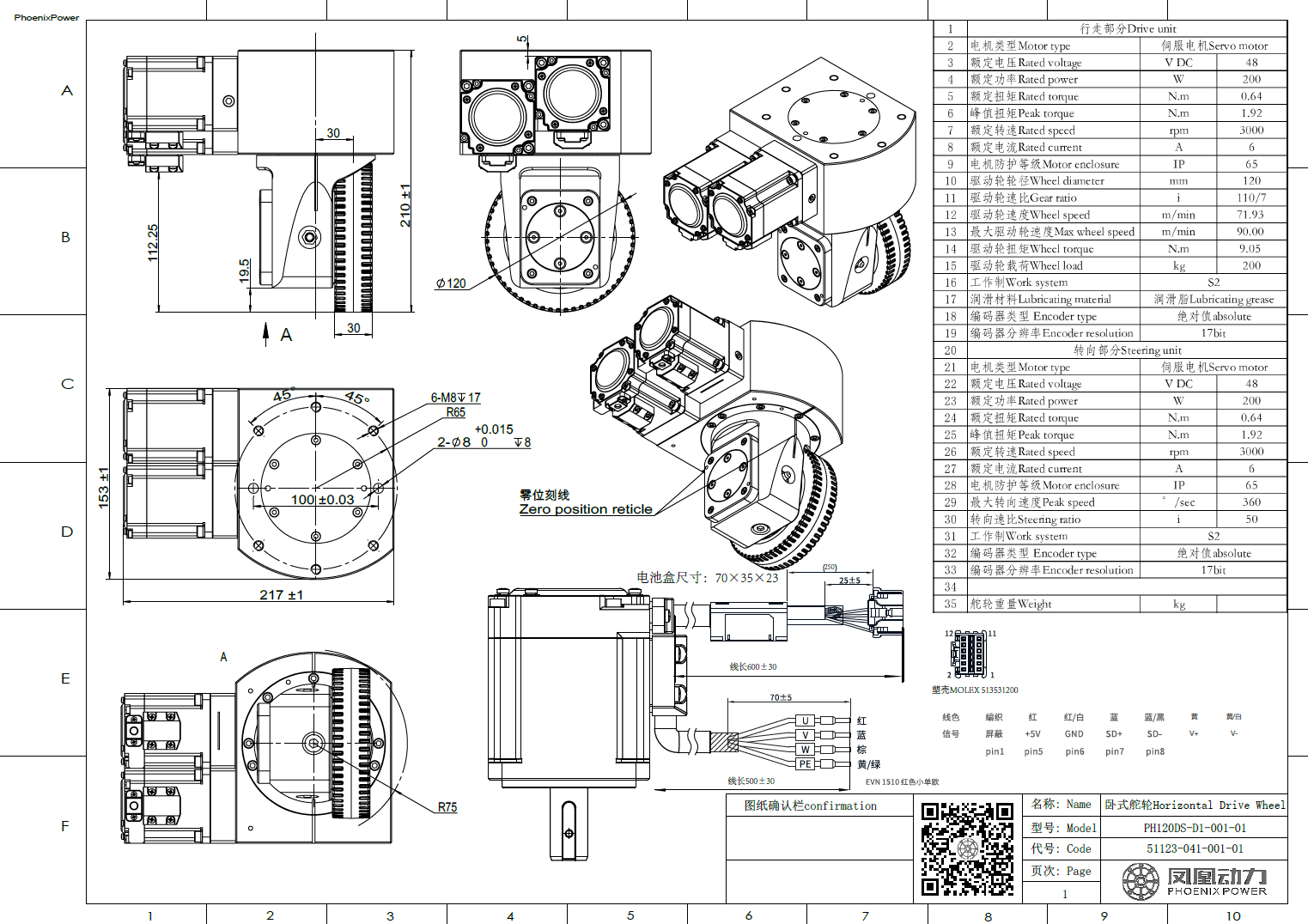PH120DS-D1-001-01 凤凰动力AGV卧式舵轮/全向