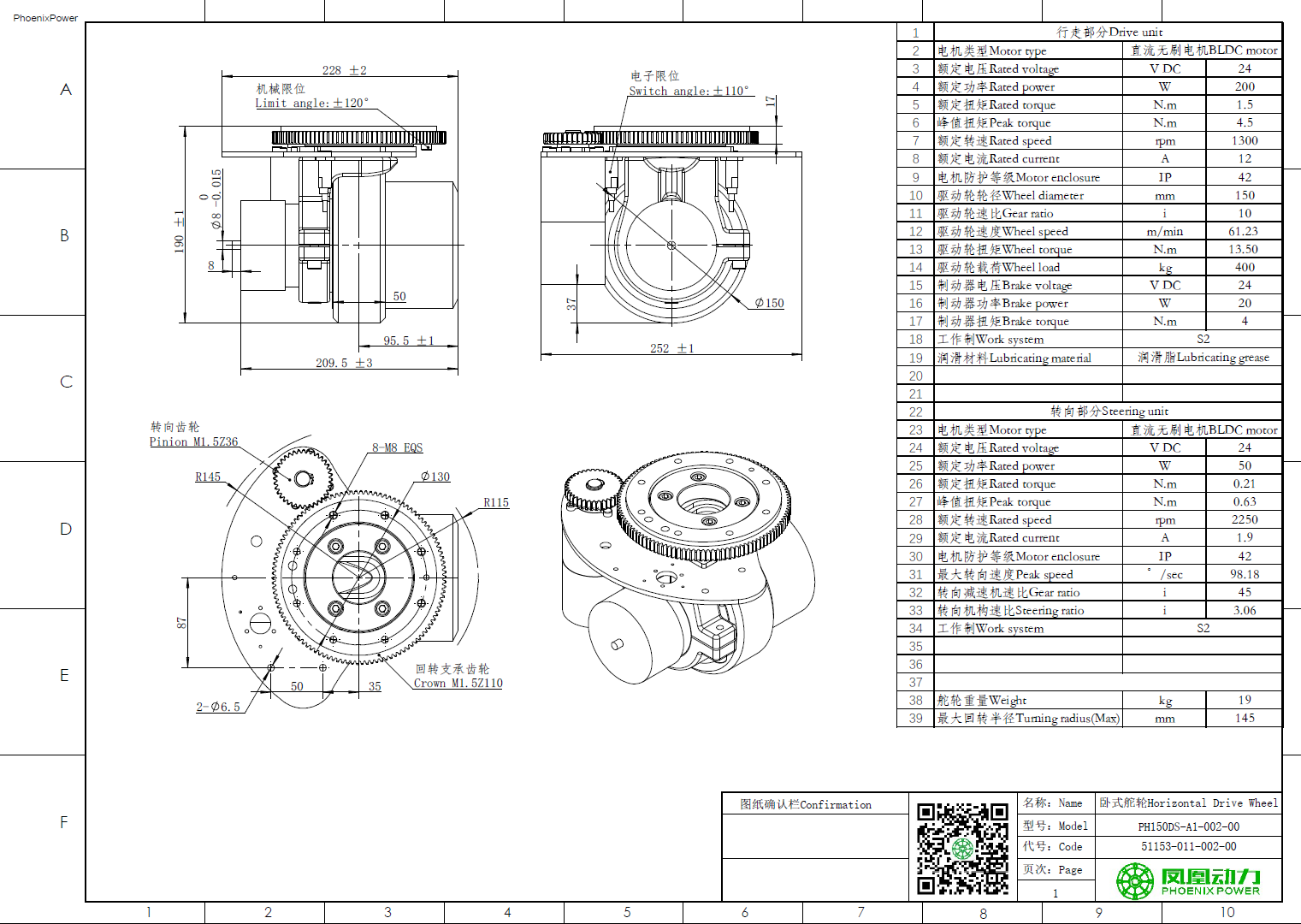 PH150DS-A1-002-00 凤凰动力AGV卧式舵轮